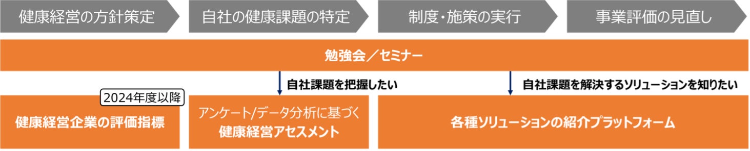 経営層、人事・健保実務担当者向けに、健康経営に関するリテラシー、スキルを高めるための勉強会/セミナーを開催します。