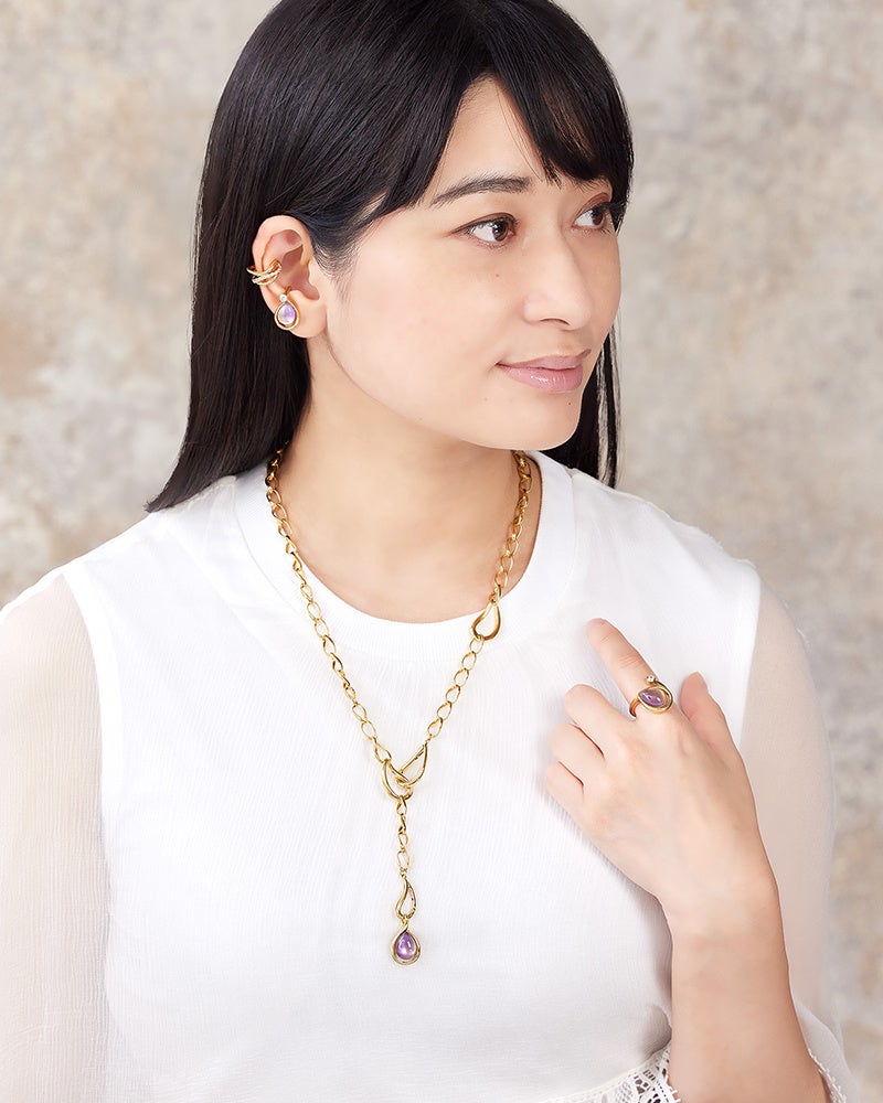 ブドウの涙のきらめきを、希少な天然石アメトリンを使用し透き通ったみずみずしいドロップのデザインに。