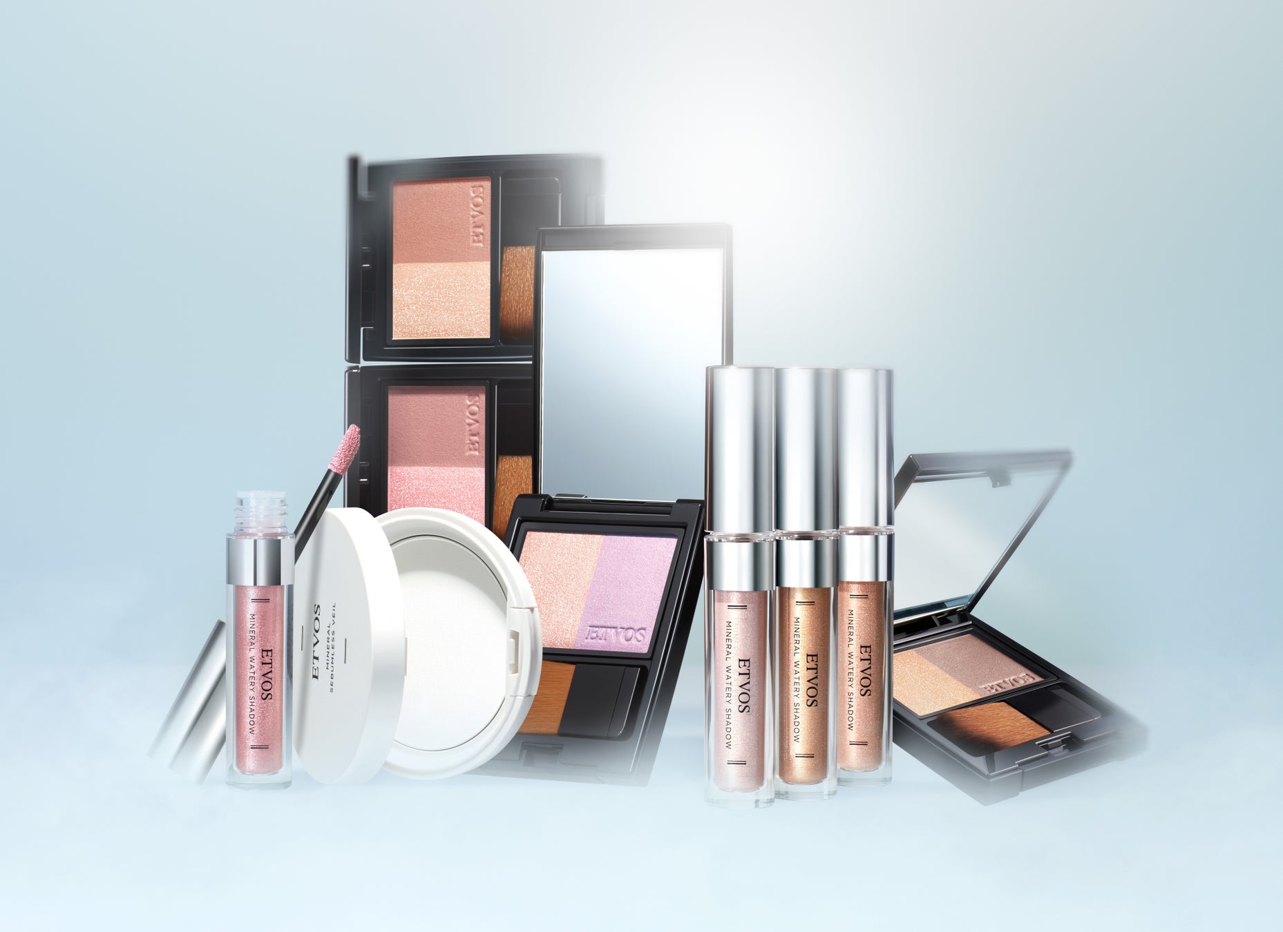 夏の暑さからエスケープしたクールな表情を描くのは、ウォータリーなアイシャドー、軽やかなプレストパウダー、光と溶け合うチーク。静かに、繊細に、心地よく。いまこの季節にしか見えない、涼しげな光を映し出して。