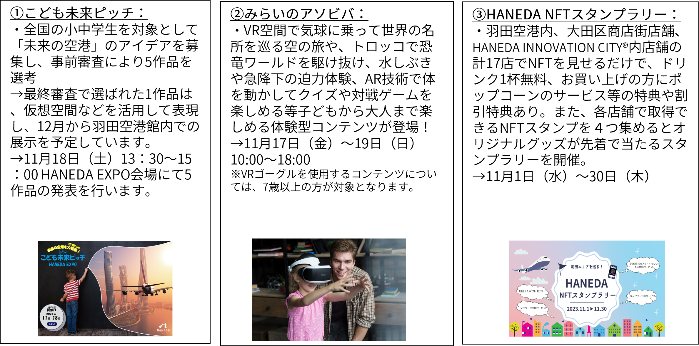 HANEDA EXPOで無料イベント開催!AR/VRでのトロッコ体験・対戦ゲーム、子ども達が描く未来の空港のピッチ発表会、NFTスタンプラリーなど、先進技術を体験&体感できます!