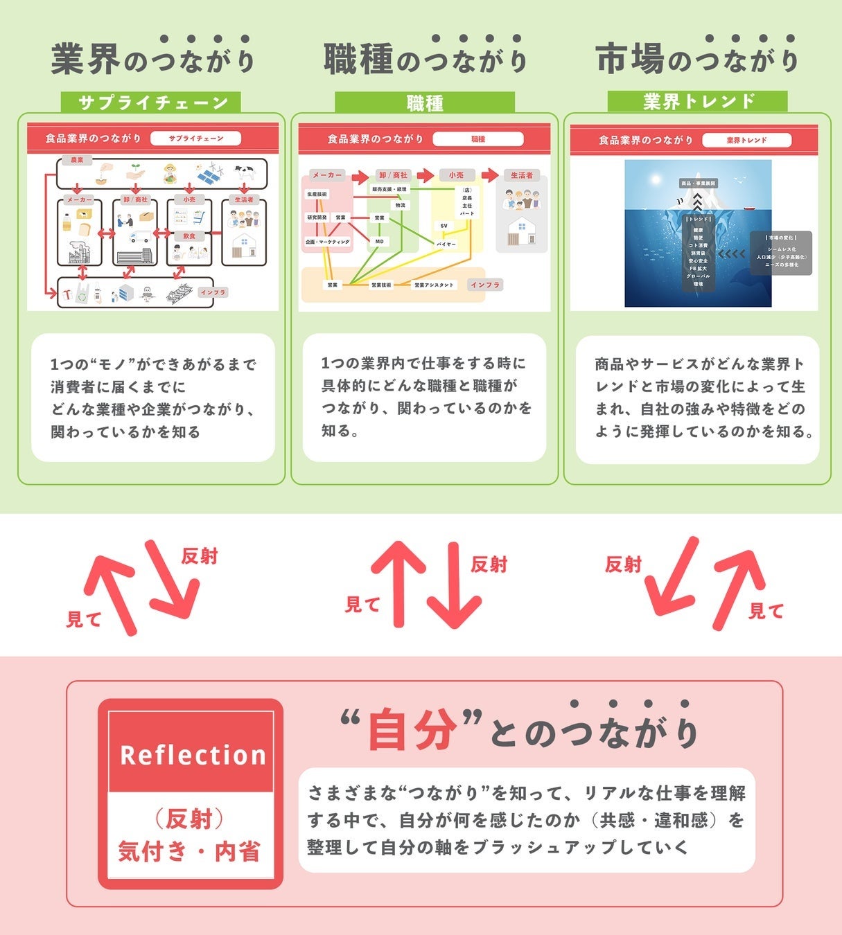 これまで就活生に対して食品業界の「業界のつながり」「職種のつながり」「市場のつながり」の3つのつながりに関する情報を提供し、業界の正しい理解を促すことを目的にイベントを運営し、就職活動を支援してきました。そして、25卒学生以降「旅業界」に特化した就活支援を開始します。