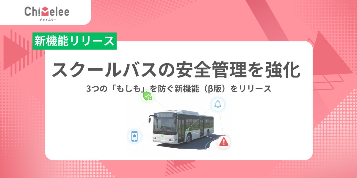 VISH株式会社(本社:愛知県名古屋市、代表取締役:田淵 浩之)は、2026年3月10日(火)、同社が開発・提供をする教育機関向け連絡システム「Chimelee(チャイムリー)」にて、スクールバスの運行管理における児童の乗降ミスや車内置き去りを検知・防止する「降車間違い防止」「乗車漏れアラート」「降車漏れアラート」の3つの新機能(β版)をリリースいたしました。