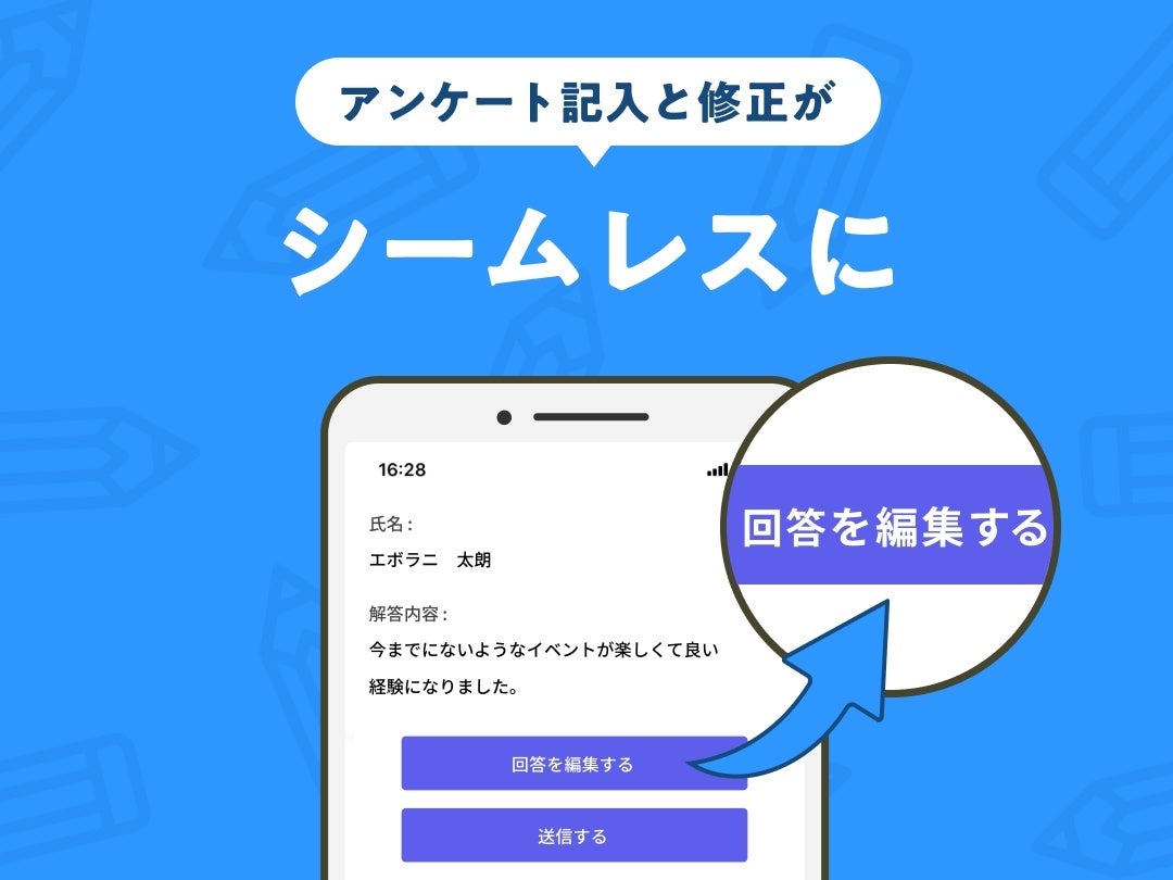 エボラニ株式会社が提供する「anybot」を導入すると、LINE公式アカウント内でアンケートを取ることも可能です。2024年4月のアップデートで、友だち(エンドユーザー)が見るトークルームの中でアンケート回答内容の修正を完結できるよう機能を拡充いたしました。設定作業の工数も半減できます。商品やサービスの満足度調査など自由記述の回答を含むアンケートを積極的に作成し、ビジネスの改善と伸長にお役立てください。