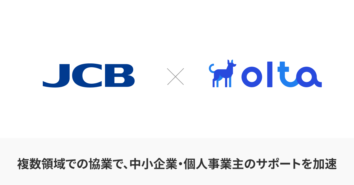 株式会社ジェーシービー(代表取締役会長 兼 執行役員社長:浜川 一郎、以下「JCB」)とOLTA株式会社(代表取締役社長兼CEO:澤岻 優紀、以下「OLTA」)は資本業務提携し、法人カード決済サービスをはじめとする複数の事業領域での協業を通じて中小企業・個人事業主の支援に取り組むことをお知らせします。
