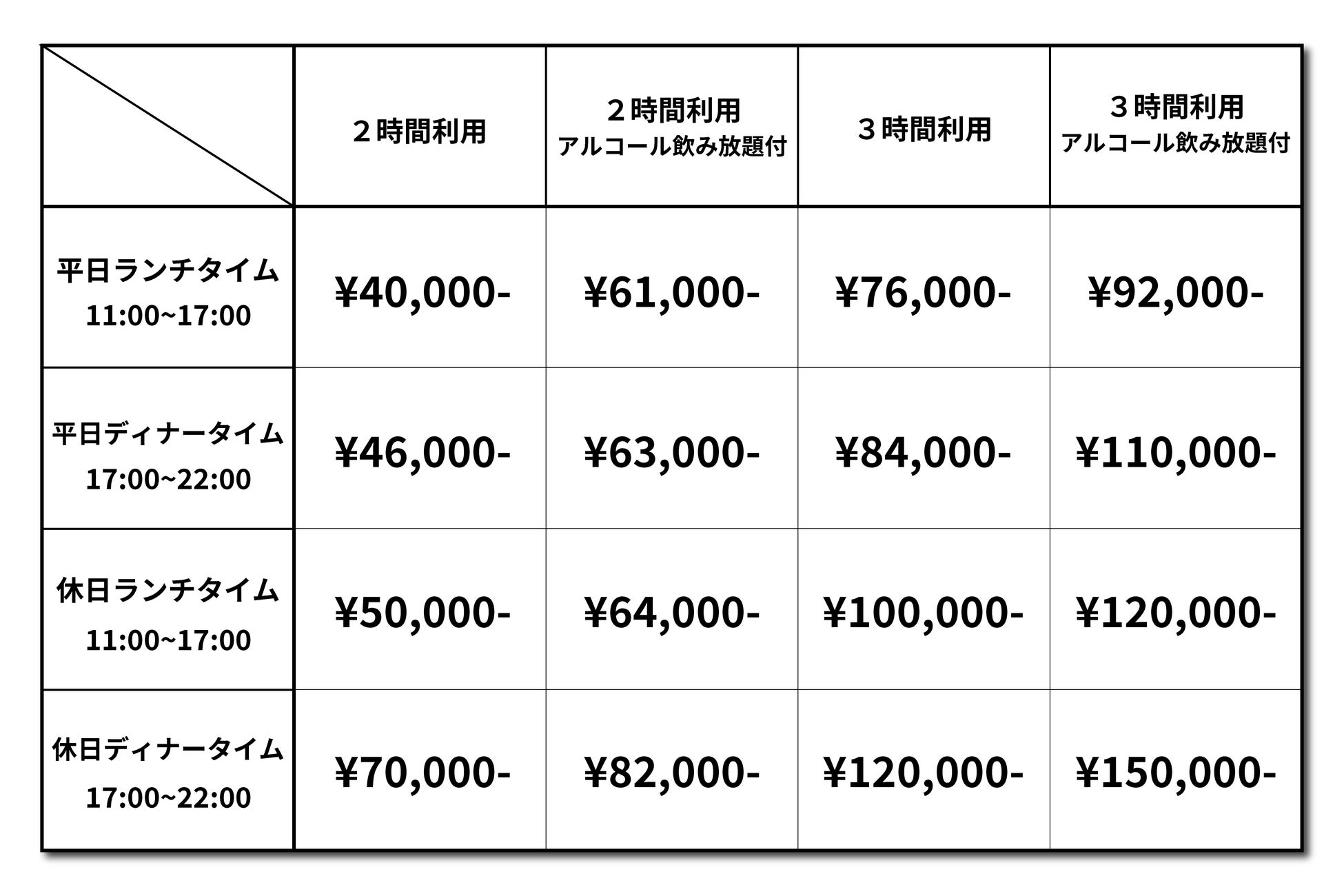※ 料金には、食事、ソフトドリンク飲み放題の料金が含まれております。