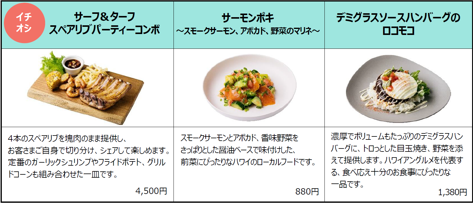 ■塊肉で提供する迫力満点のスペアリブなど、ハワイアングルメ12種が登場!