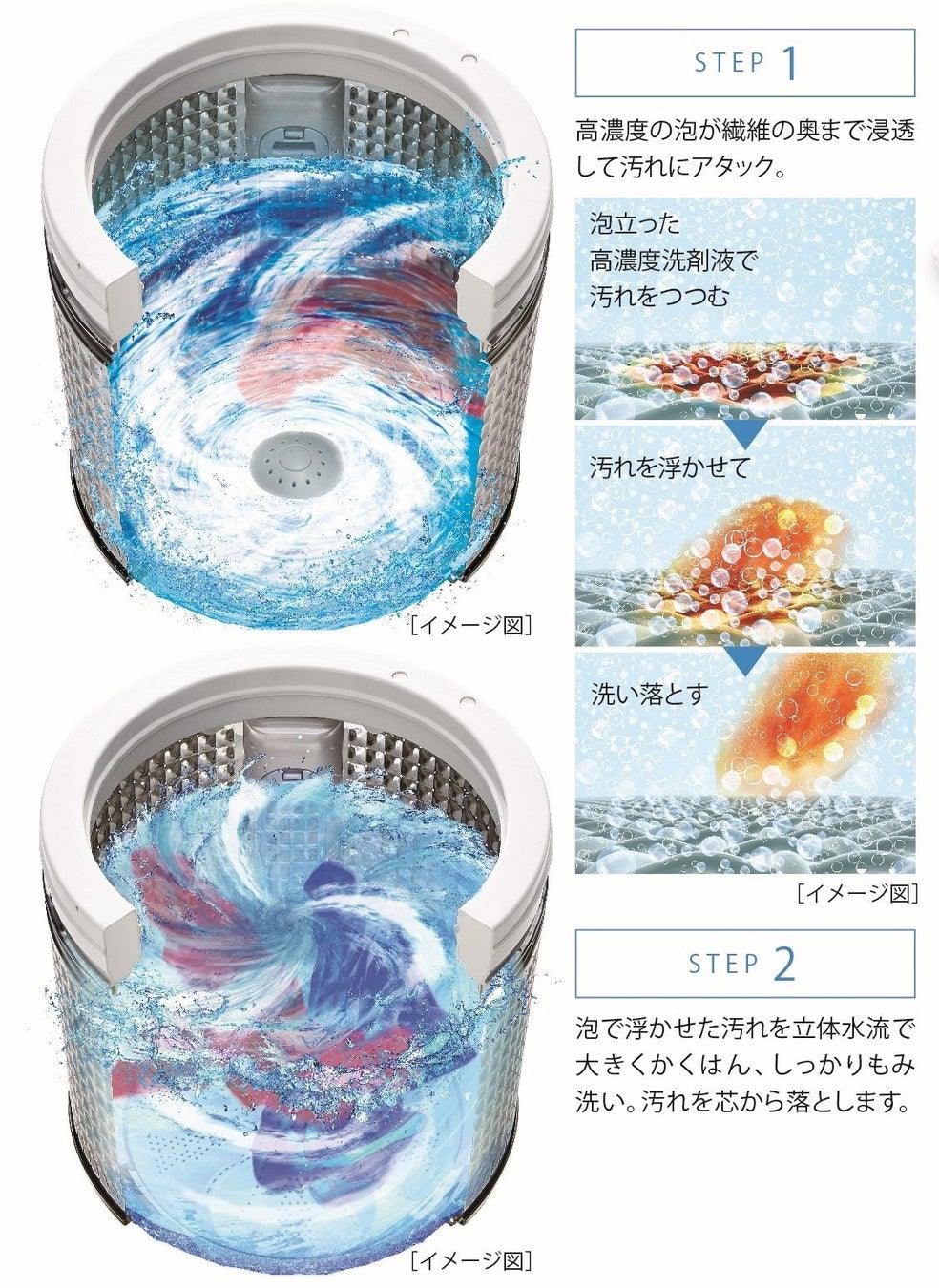 ●高濃度の泡パワーと立体水流で洗う「スピンバブル洗浄」