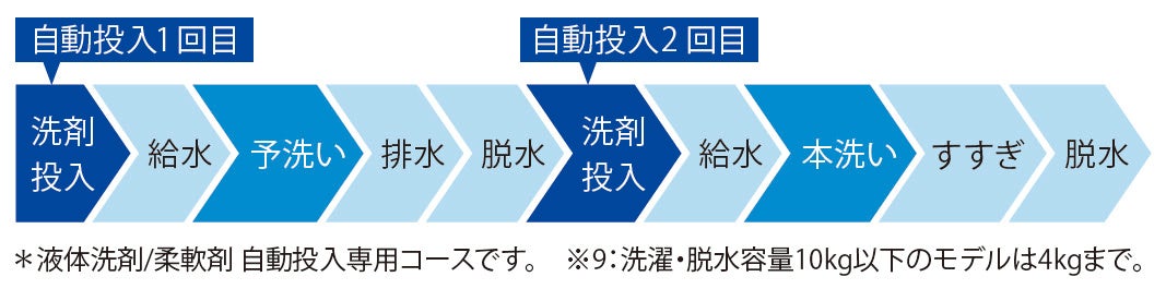 ※9:洗濯・脱水容量10kg以下のモデルは4kgまで。