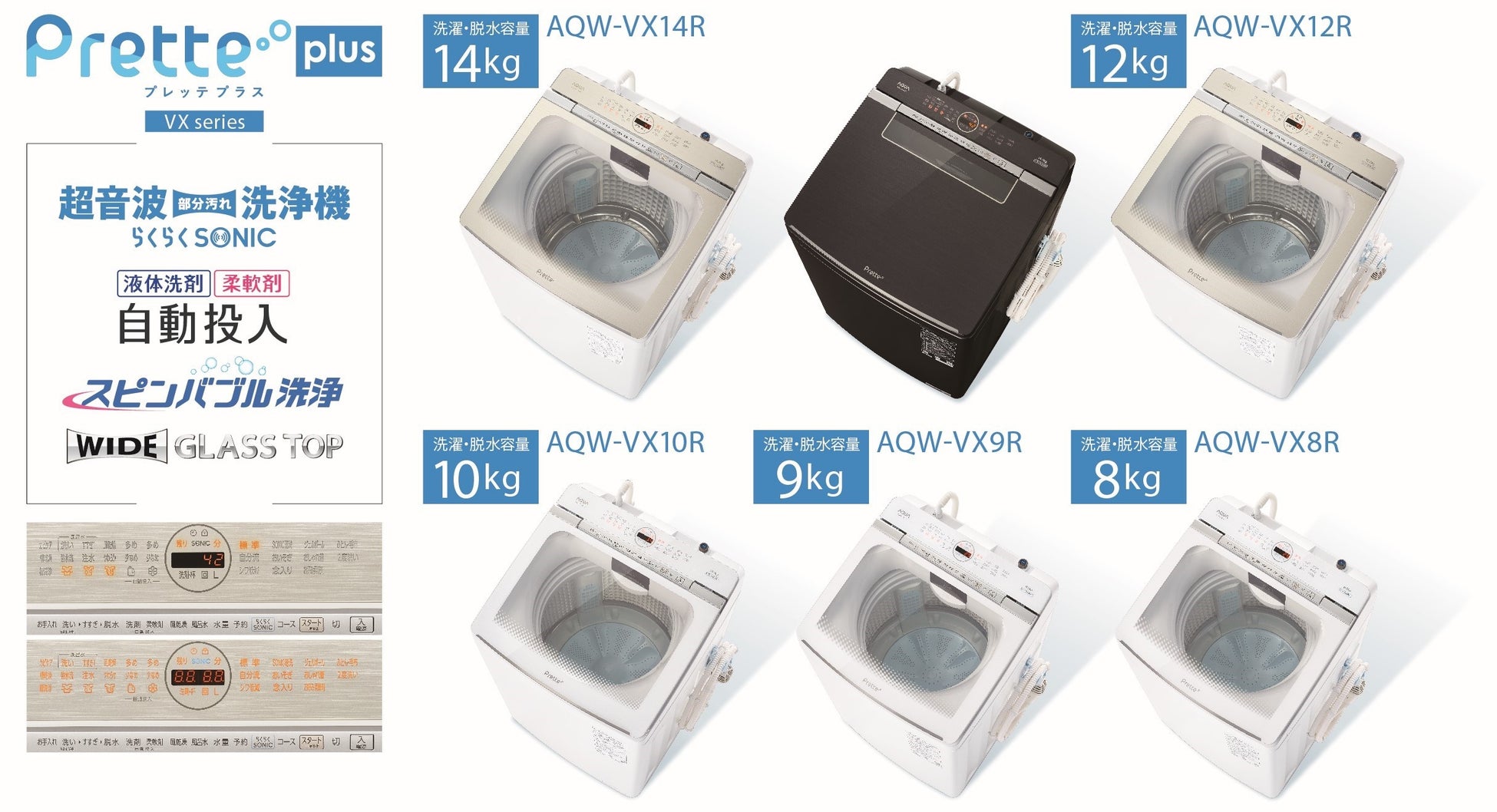 「Pretteシリーズ」は、便利な「液体洗剤・柔軟剤 自動投入」を搭載した「Prette(VAシリーズ5機種)」と、併せて「超音波部分汚れ洗浄機能」を搭載した「Prette plus(VXシリーズ5機種)」の2つのシリーズで展開する縦型の全自動洗濯機です。容量は、それぞれ単身者からファミリー層まで幅広いユーザーに向けた8㎏~14㎏を揃え、豊富な機能とラインナップで多様なニーズに対応しています。今回の新モデルでは「予洗い」と「本洗い」を行う「2度洗いコース」が新たに追加され、しつこい油汚れなどもしっかり洗浄して他の衣類への汚れ移りを防ぎます。
