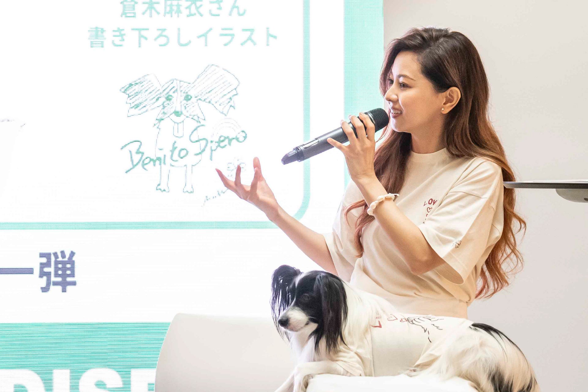 トークショーでは、ベニート君の紹介や日常のエピソード、愛犬との暮らしによって生まれた生活の変化や、アーティスト活動への影響など、心温まる話が披露されました。また、ブランドパートナー就任の背景や、チャリティーを目的としたコラボグッズの企画、さらに、ペットの未来や支援活動に対する思いについても語られました。