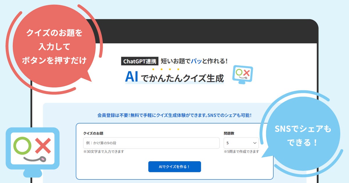 【ChatGPT連携】短いお題でパッと作れる!AIでかんたんクイズ生成体験を