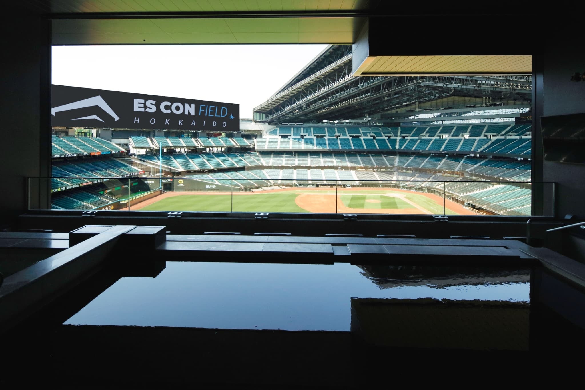 エスコンフィールドHOKKAIDO内にある世界初の“フィールドを一望できる球場内天然温泉とサウナ”。半屋外の水着着用ゾーンには、フィールドを見下ろす24席の“ととのえテラスシート”があり、サウナ室や浴槽からも試合を見ることができるエンターテイメント性あふれる温浴施設。屋内バーゾーンには球場内醸造のオリジナルクラフトビール、各種ドリンクや軽飲食を楽しめる空間を完備しています。