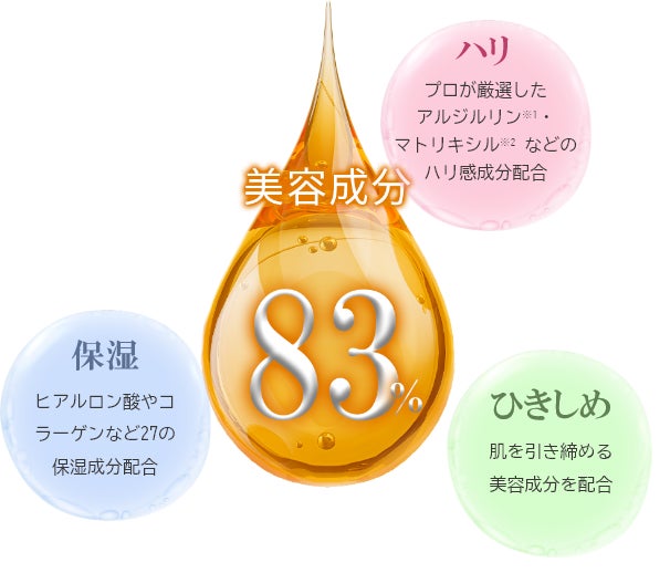 大人にうれしい美容液成分(ハリ・保湿・ひきしめ)を 83%配合した贅沢仕様。