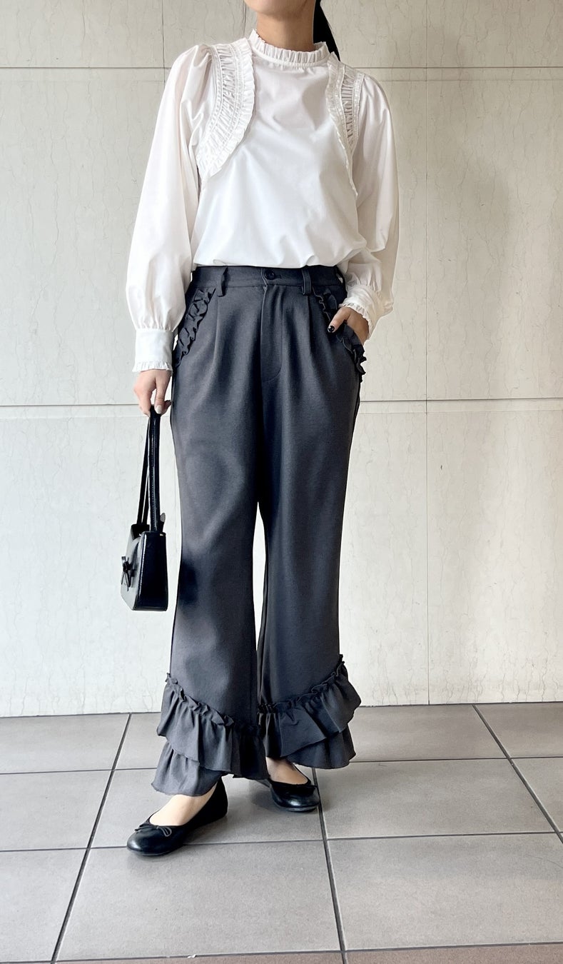 フォーマルなシーンでもほんのり甘さをプラスしたいママさんにおすすめの着回しコーディネート。フリルやレース使いで可愛らしさを表現しつつ、落ち着いたカラーを選ぶことで、大人可愛いスタイルを実現。同じボトムスに異なるトップスを合わせるだけで、印象がガラリと変化します。