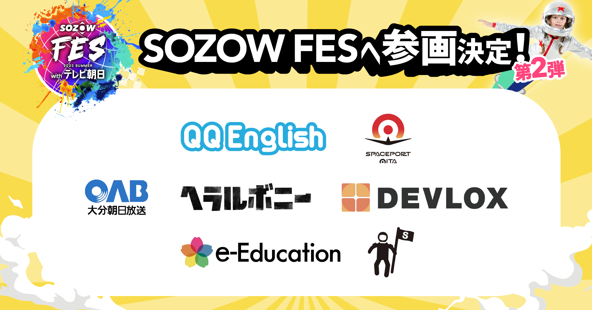 【発表第二弾】7/22(土)〜8/6(日)開催のSOZOW FESにQQEnglish、大分県、大分朝日放送、ヘラルボニー、DEVLOX、e-Education、SPACETAINMENTの参画が決定