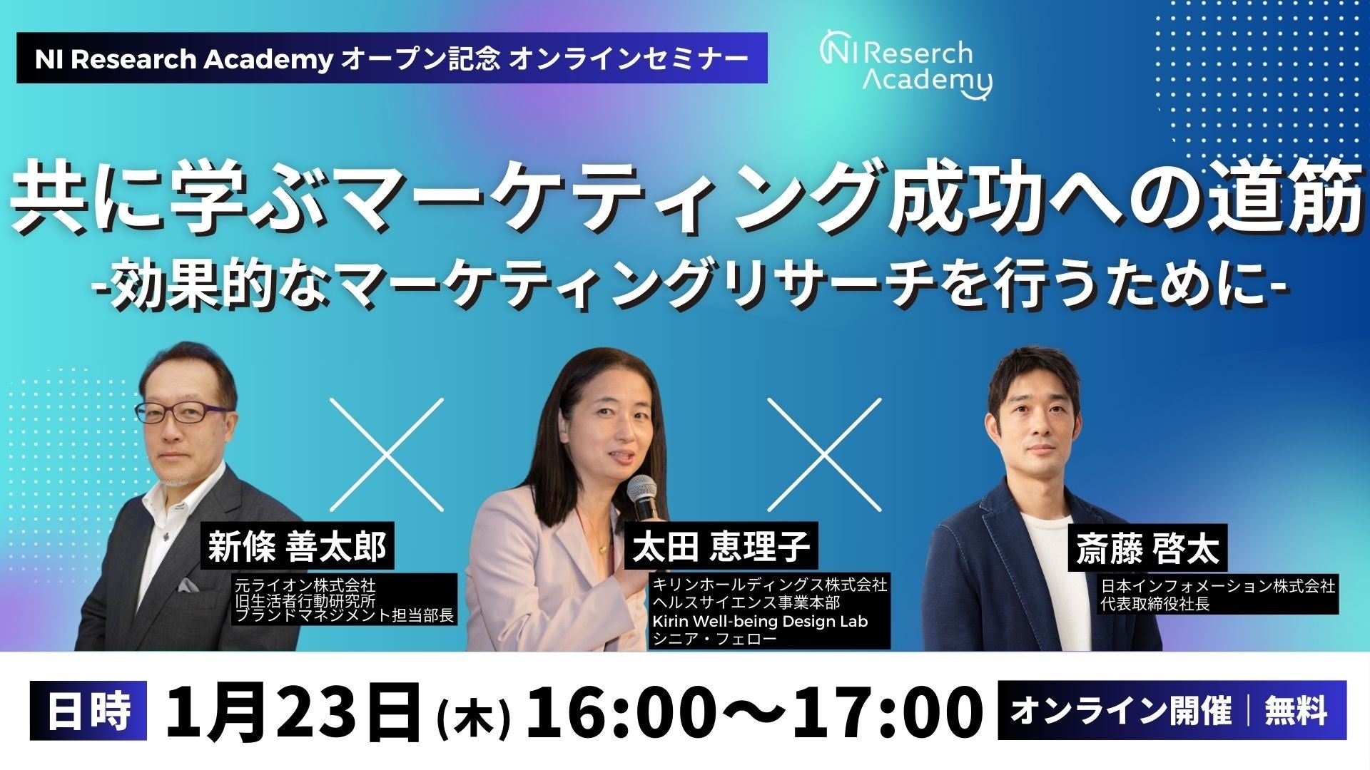 【1/23(木)16:00開催】NI Research Academy オープン記念オンラインセミナー「 共に学ぶマーケティング成功への道筋-効果的なマーケティングリサーチを行うために-」