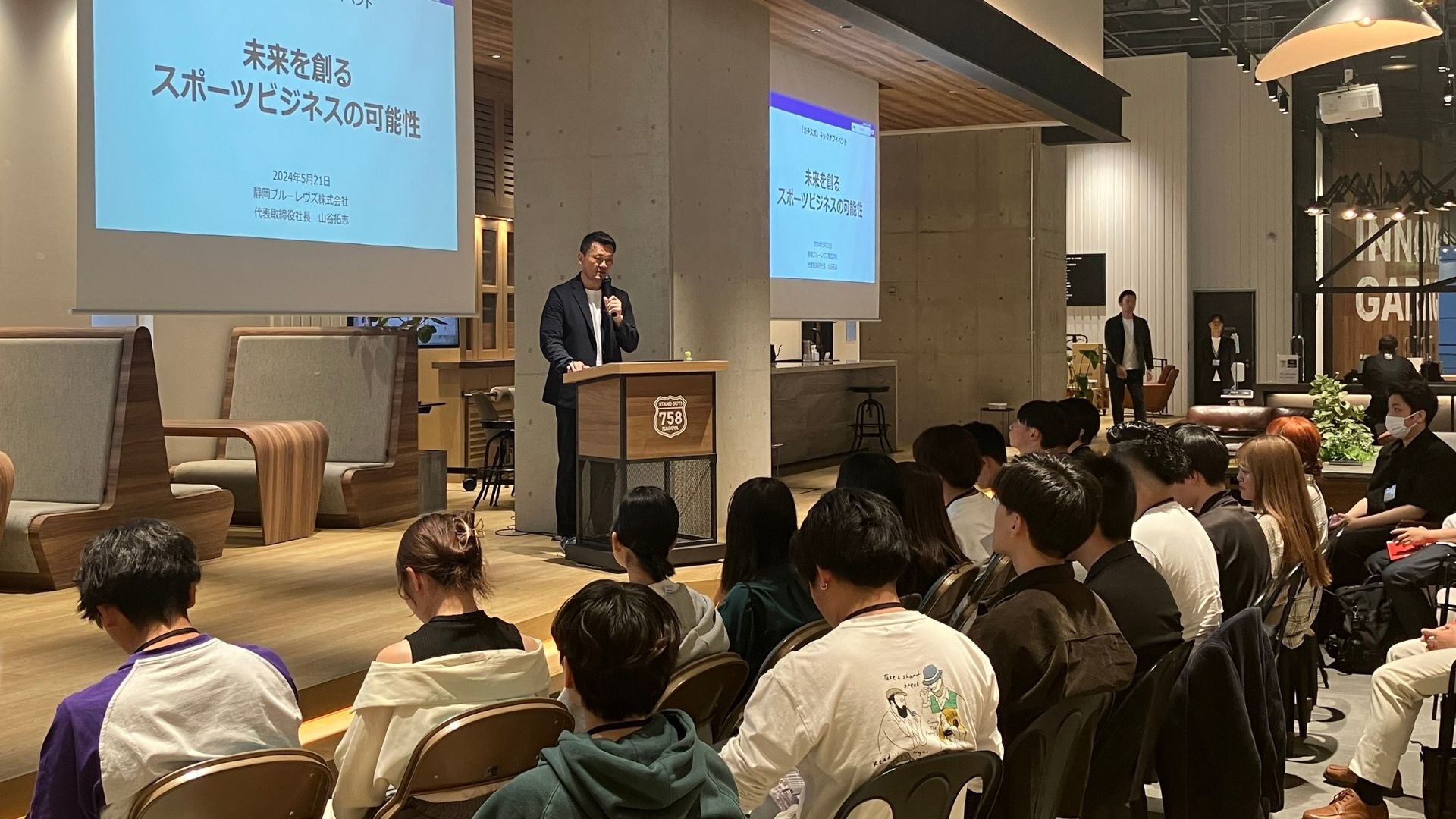 毎年、ガチスポの講師を務めてくださっている静岡ブルーレヴズ株式会社代表取締役社長・山谷拓志氏や三期の実践パートで試合にてブースを出展させていただいた、名古屋ダイヤモンドドルフィンズ株式会社事業計画課長・園部裕大氏が登壇しました。
