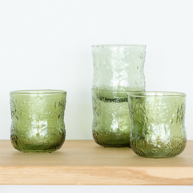 フィンランド語で”モミの木”という名前がついたこちらは、12角形のフォルムが特徴的なiittalaのタンブラーです。1981〜88年の間に作られたシリーズです。実はモミの木の本数にも、こだわりが潜んでいるそう。大・中・小の3サイズがあります。
