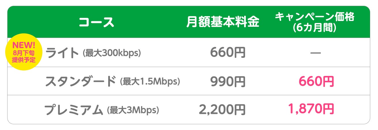 株式会社オプテージ(大阪市中央区)は、携帯電話サービス「mineo(マイネオ)」の料金プラン「マイそく」において、2022年8月下旬より新たに「ライト」コースを提供開始いたします。月額660円で、平日昼間以外の通信速度が最大300kbpsでデータ使い放題となるコースです。
