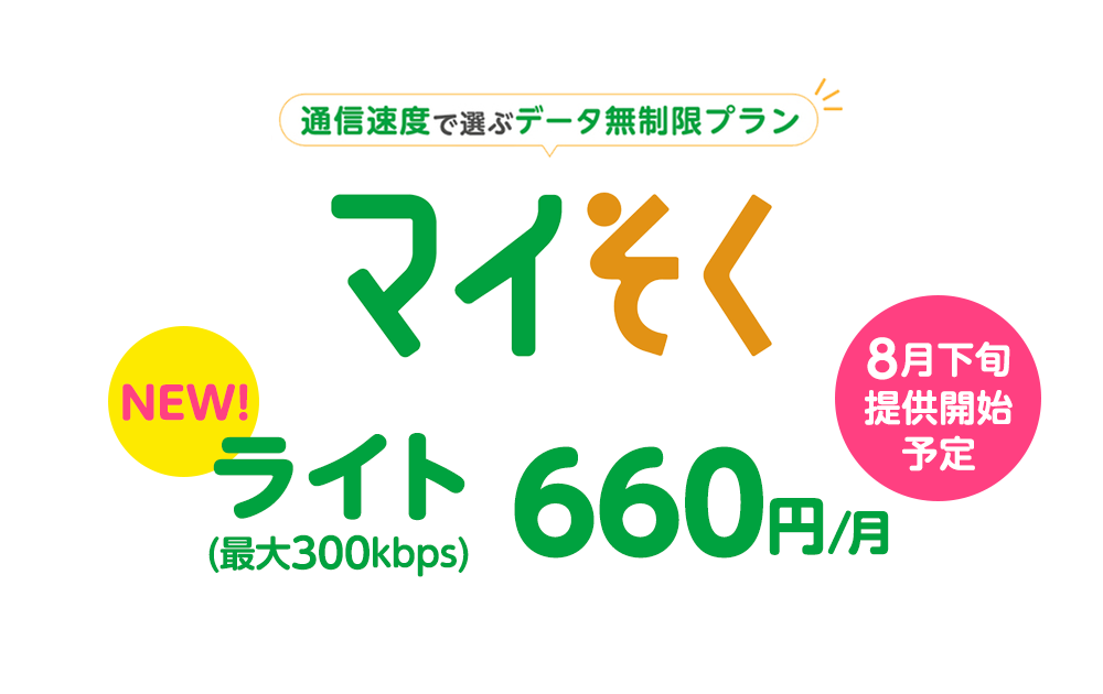 mineo 「マイそく」に660円/月のライトコース誕生! 平日昼間以外最大300kbpsでデータ使い放題
