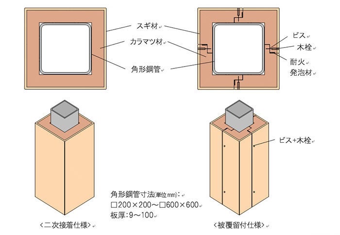 木被覆角形鋼管柱で1時間耐火大臣認定を取得~国内初、木材のみで被覆 中大規模建築の木材利用推進~