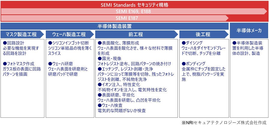 NRIセキュアテクノロジーズ株式会社(以下「NRIセキュア」)は、国内の情報セキュリティ企業として初めて[i]、半導体の製造工程におけるサイバーセキュリティの強化に向けたコンサルティングサービス「半導体業界向けSEMIセキュリティ規格準拠支援サービス(以下「本サービス」)」の提供を本日開始します。本サービスは、半導体および半導体製造装置を作る事業者向けに、国際半導体製造装置材料協会(以下「SEMI」)[ii]の定める国際標準規格「SEMI Standards」[iii]のセキュリティ規格(以下「SEMI セキュリティ規格」)への準拠を支援するものです。