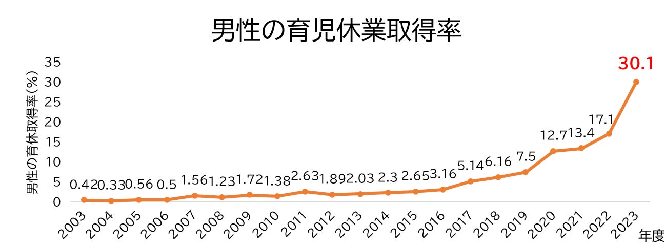 また、厚生労働省「令和5年度雇用均等基本調査」における男性の育休取得率は、30.1%という結果となりました。