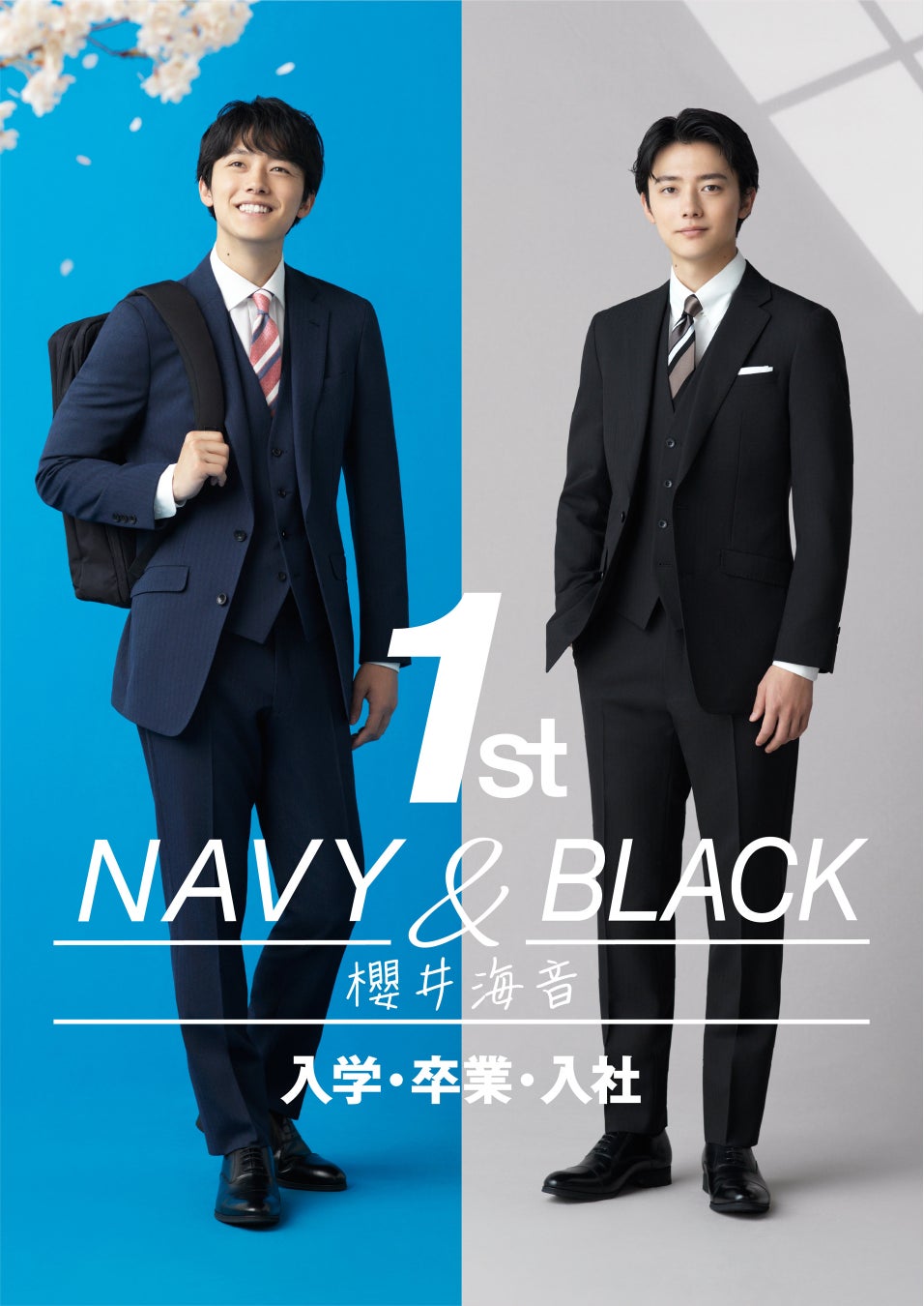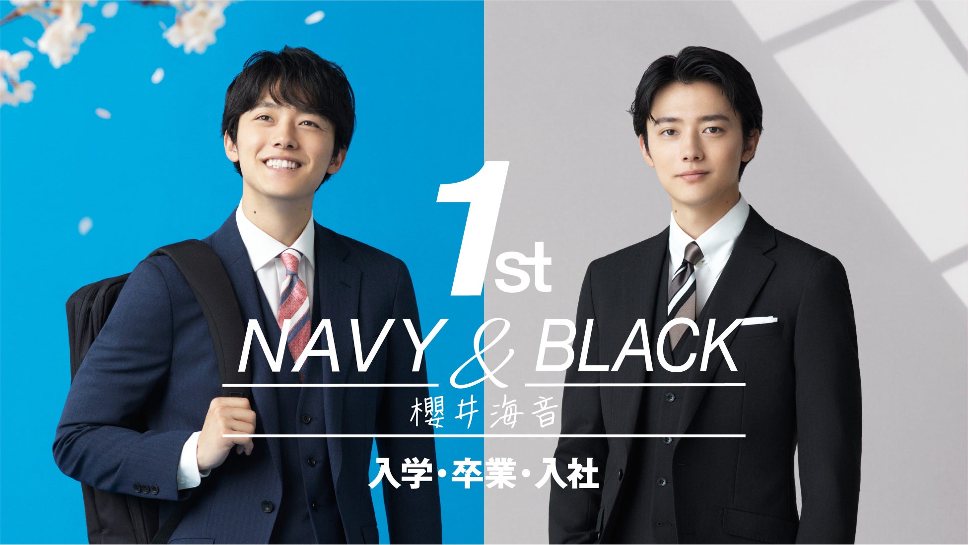 【初めてのスーツ、始まりのスーツ】をコンセプトに、入学・卒業・新入社など新しい節目で、フレッシャーズの初めてのスーツ選びを応援する「1st NAVY&BLACK SUIT」を全国約190店舗のスーツセレクト店舗やブランドサイトで、一斉展開いたします。今回はネイビースーツを「初めてのスーツ」、ブラックスーツを「始まりのスーツ」とし、イメージしやすいコーディネートを提案します。