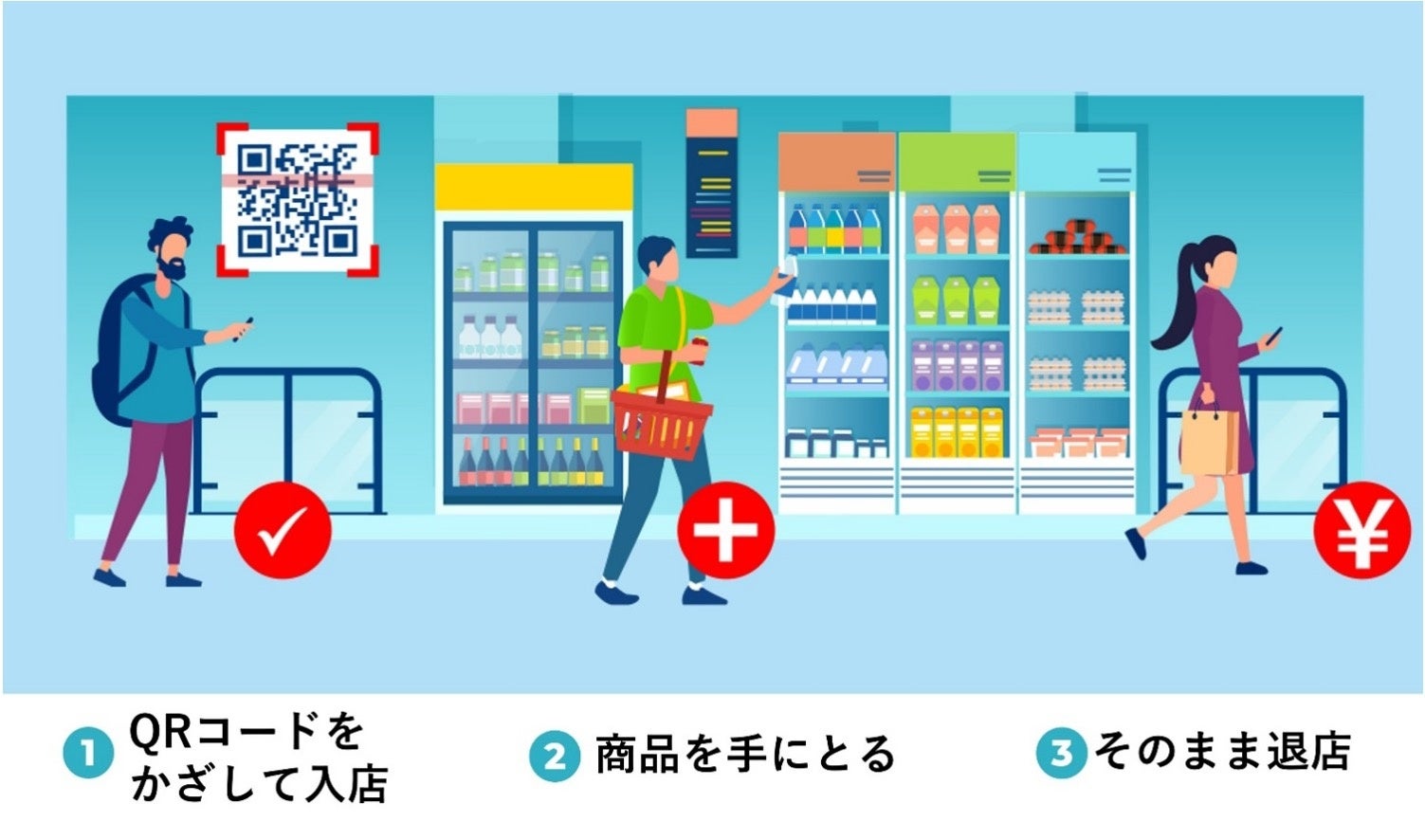 ※2 店舗内に設置されたセンサーやカメラにより購入商品を検知し、レジを通らず退店可能な無人・省人店舗。専用アプリで事前に決済手段を登録の上、QRコード認証により入店することで、入店者を把握し、アカウントに紐付けたクレジットカードで決済される仕組み。
