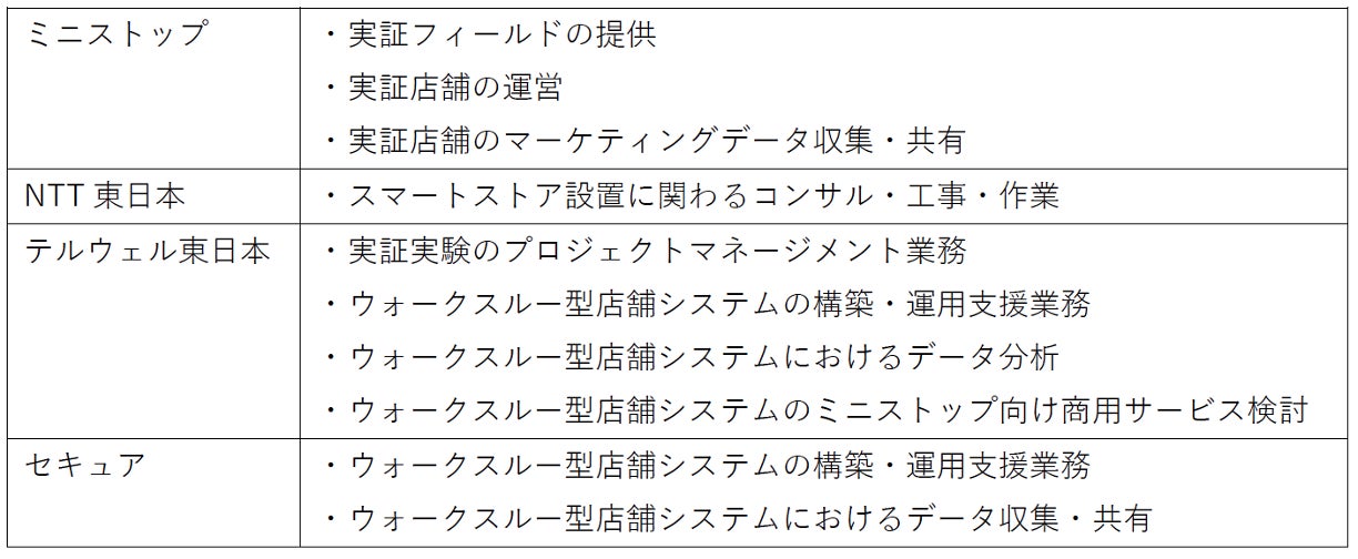 本実証では、4社が連携してミニストップ ポケットのウォークスルー型店舗の構築および運用を行