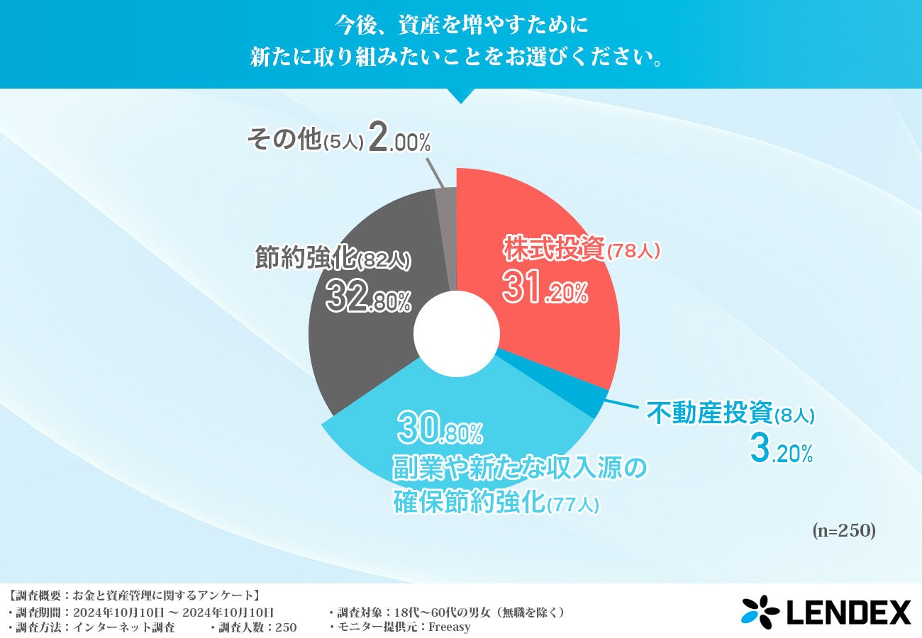 また、今後の資産形成に向けて「節約強化」や「副業による収入源の確保」といった現実的な手段を積極的に考える人が増えており、堅実な資産形成が引き続き注目されていると言えるでしょう。