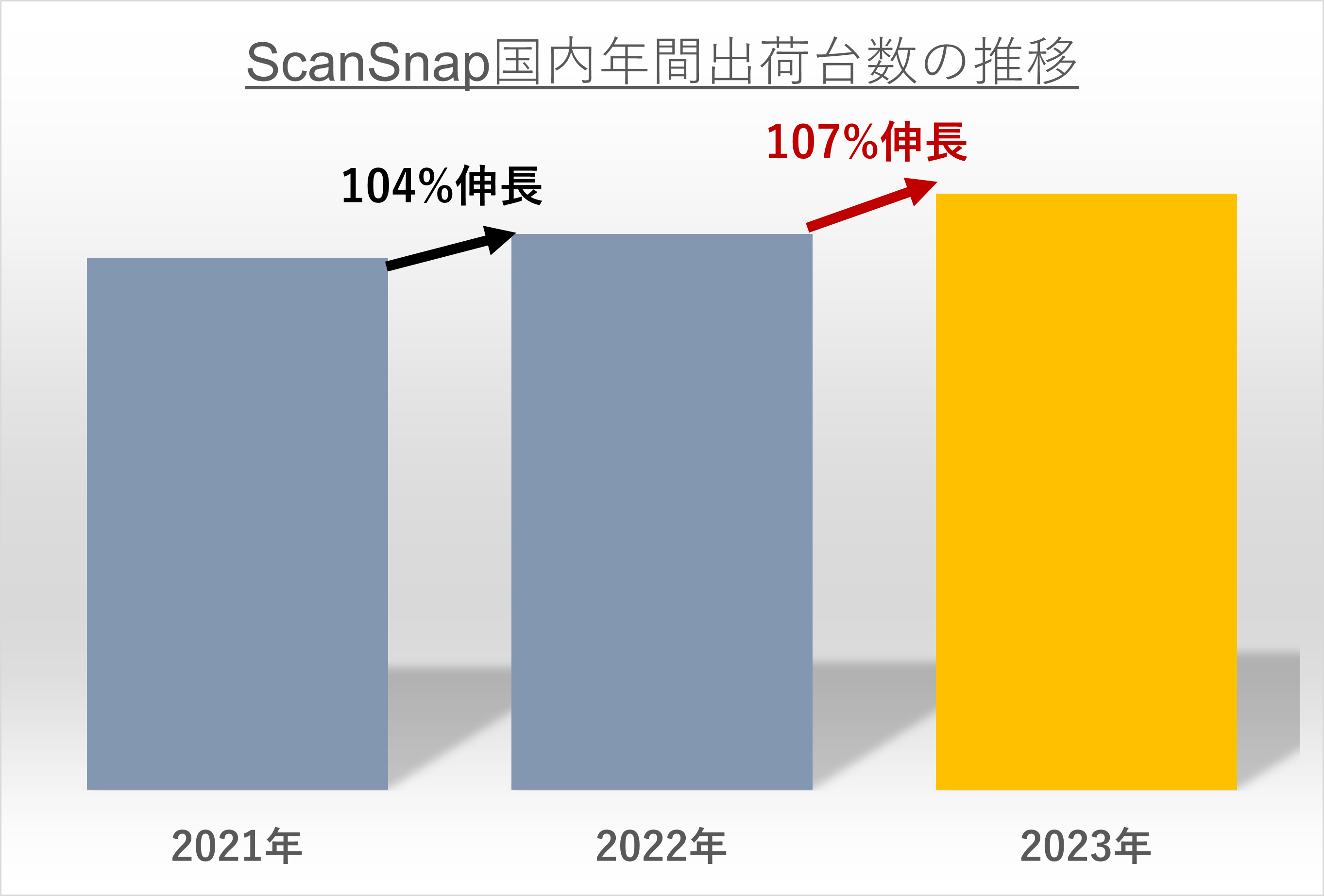 2023年のScanSnap年間出荷台数は前年比107%とさらに伸長しています。