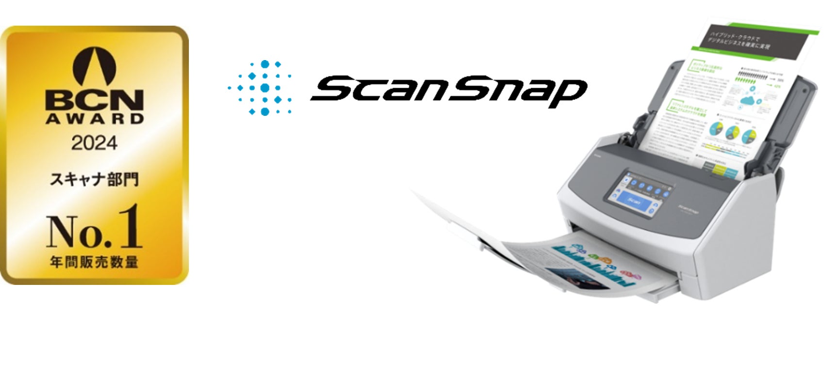 2001年から販売を続けている「ScanSnapシリーズ」が、家電市場POSデータサービス「BCNランキング」にて、2023年で14年連続シェアNo.1を達成することができました。ご愛顧いただきましたお客様やパートナーの皆さまにこの場をお借りして感謝申し上げます。ScanSnapは、業務用スキャナー「fiシリーズ」で培ってきた技術を継承しながら、コンセプトとなるカンタン・スピーディー・コンパクトを追求してきました。今後も本コンセプトを追求していくとともに、多様な働き方・ライフスタイルに寄り添い、スキャンを入り口としたお客様のデジタルトランスフォーメーションを強力に支援しスマートで心地よい暮らしを実現してまいります。ScanSnapの更なる進化にご期待ください。