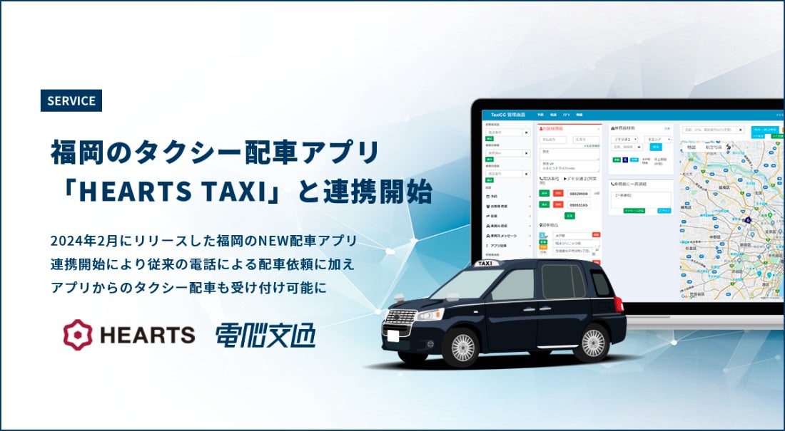 電脳交通の配車システム「DS」、福岡のタクシー配車アプリ「HEARTS TAXI」と連携開始