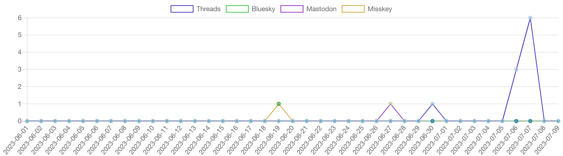 - Threads、Mastodon、Bluesky、Misskeyのウェブニュース推移