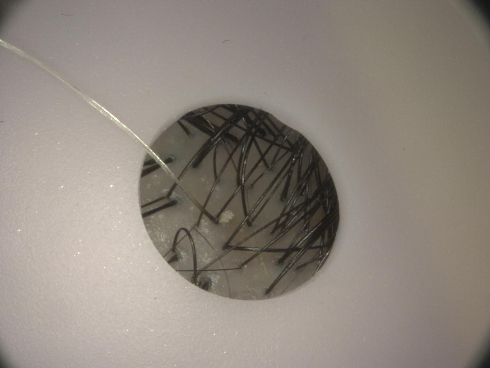 ヤーバサンタ配合製剤を毎日2回、半年間塗布し、白髪の変化を毛髪1本ずつ研究員の目視によって評価しました。その結果、5名の被験者全員で、最短2週間から3か月以内の間に白髪改善効果が確認されました。効果があった毛髪は、根元から途中にかけて黒やグレーに変化しました。