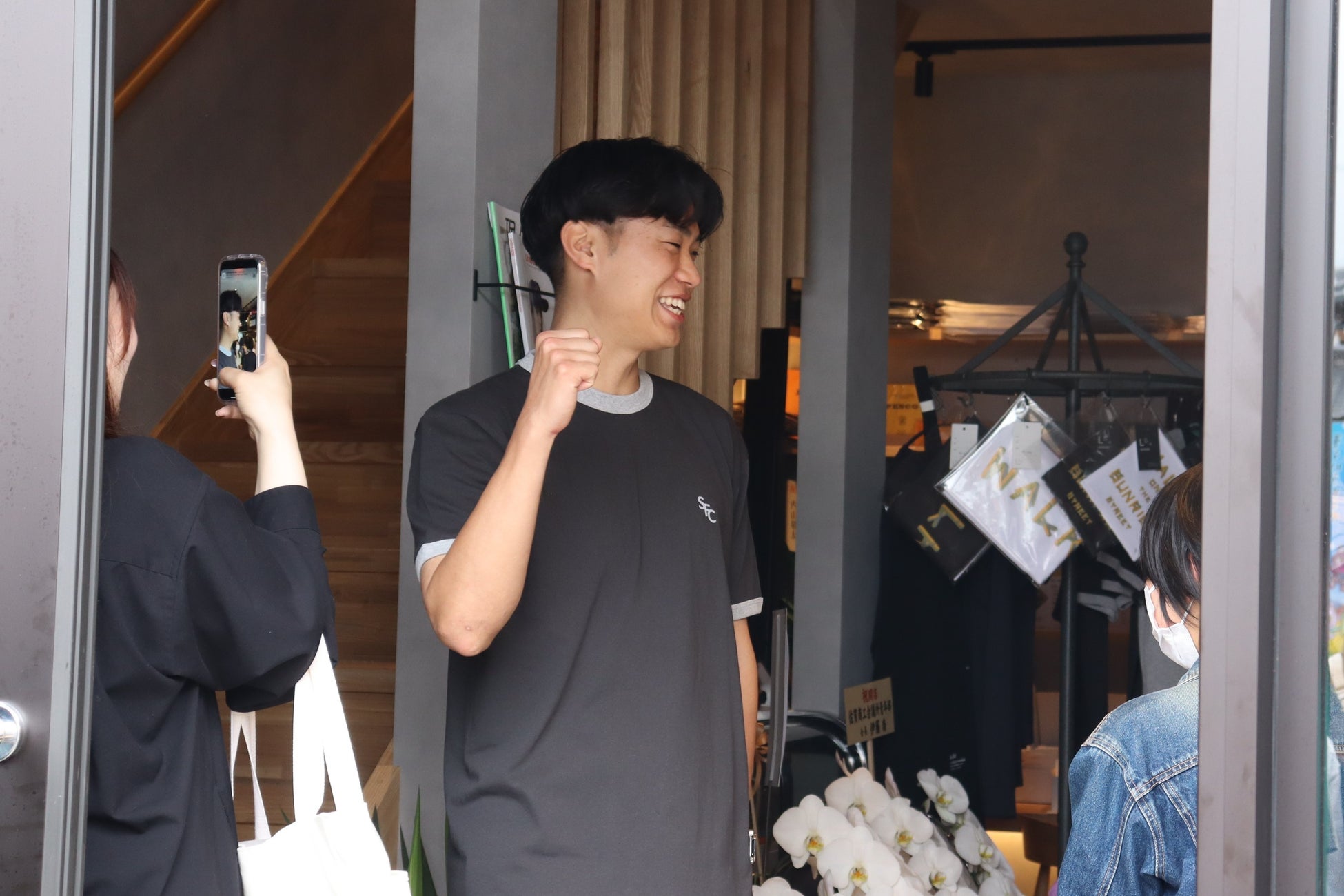 駆け付けたファンの皆さんと交流を楽しむりょっぴ店長。