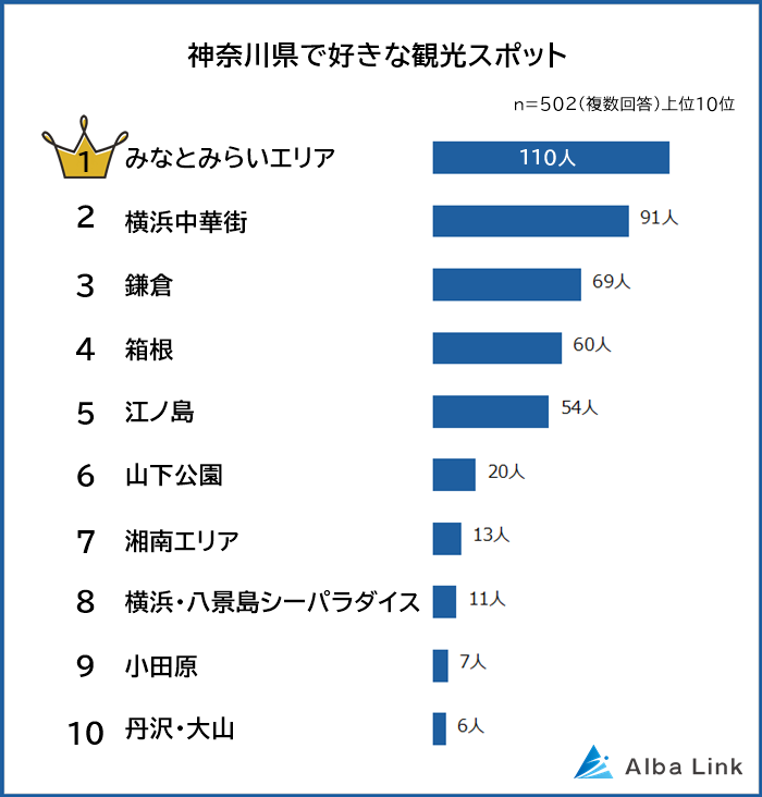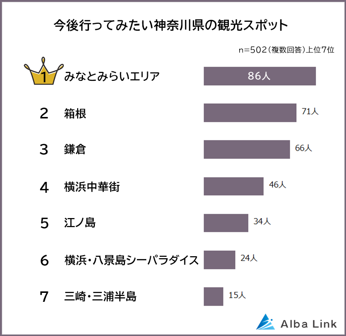 今回、株式会社AlbaLink( https://albalink.co.jp/ )が運営する高く売る不動産( https://wakeari-hikaku.com/ )は、全国の男女502人を対象に「神奈川県の観光スポット」についてアンケート調査を実施しました。