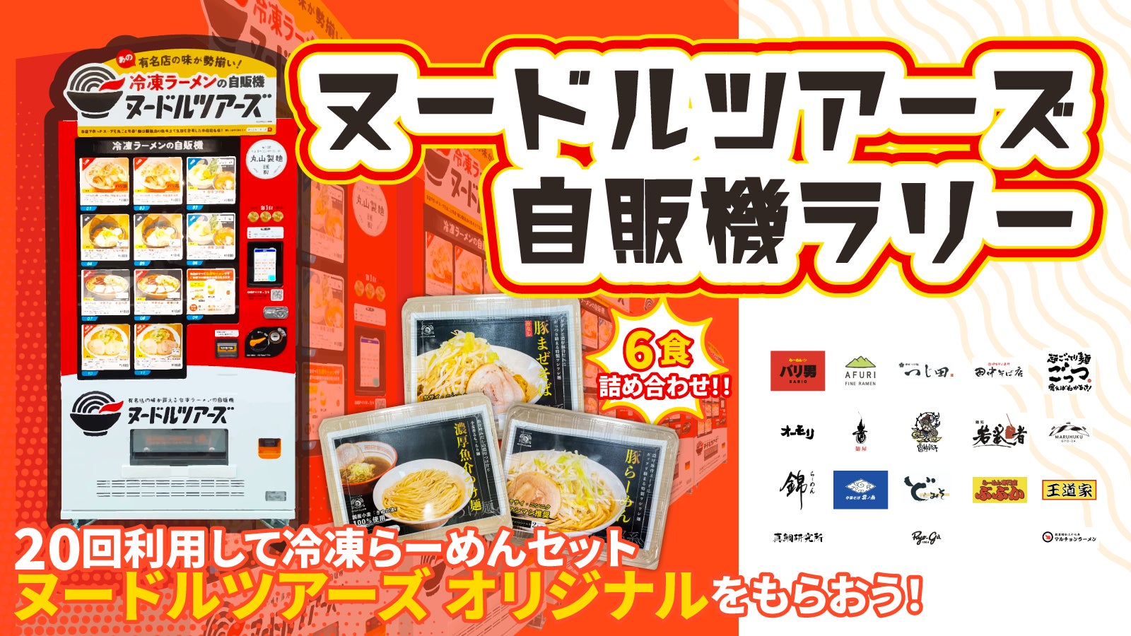 3bitter株式会社が運営するスマートフォンアプリ「らーめんガチャ」が、株式会社丸山製麺(本社:東京都大田区、代表取締役:丸山 和浩)が運営する”おうちで全国の有名ラーメンを味わえる”冷凍ラーメン自販機「ヌードルツアーズ」とコラボレーションし、「ヌードルツアーズ自販機ラリー」を開催します。