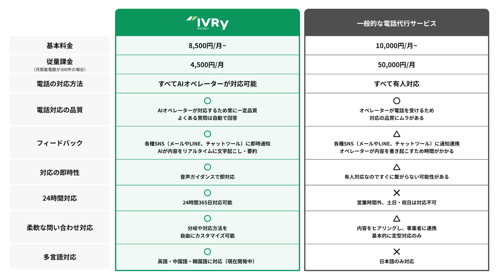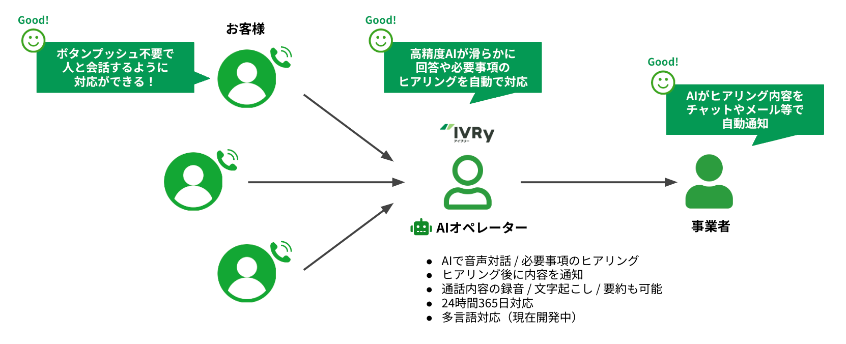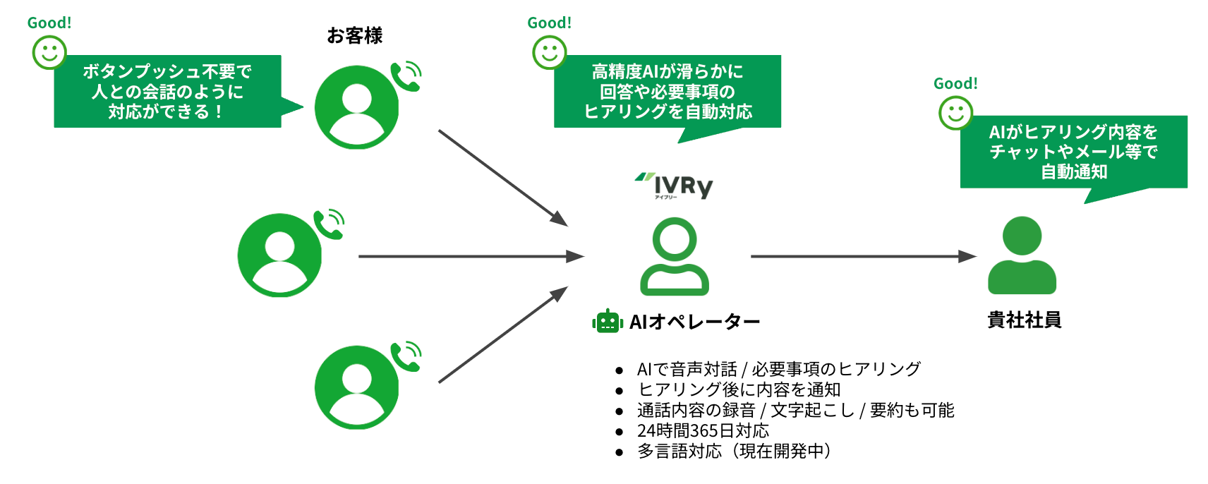 IVRyの「AI電話代行サービス」について https://ivry.jp/telephone-answering/