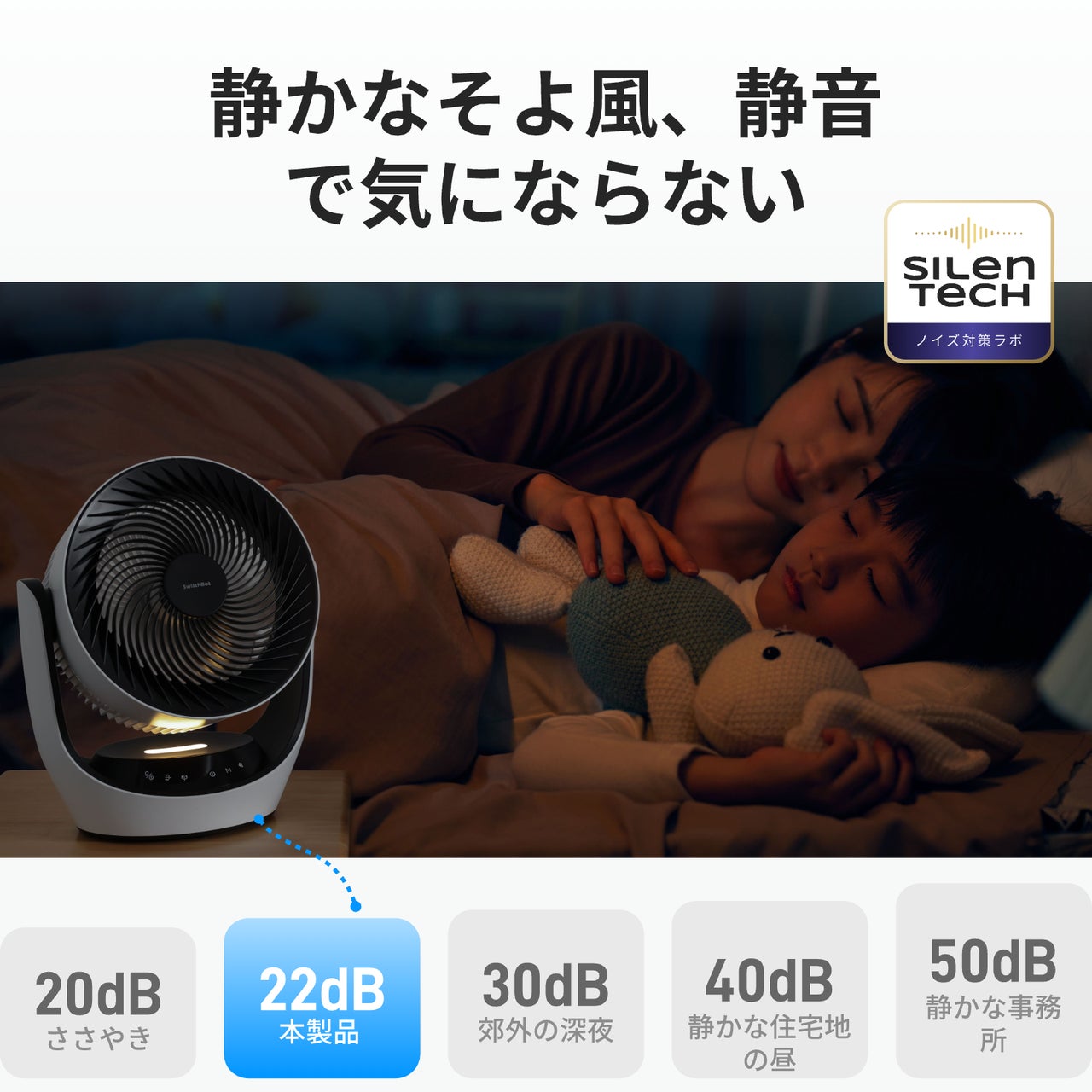 SwitchBot発!「SilenTech™」静音技術搭載で、運転音は22dB以下。就寝時も、リモートワーク中でも、そよ風のように静かで、運転音が気になりません。