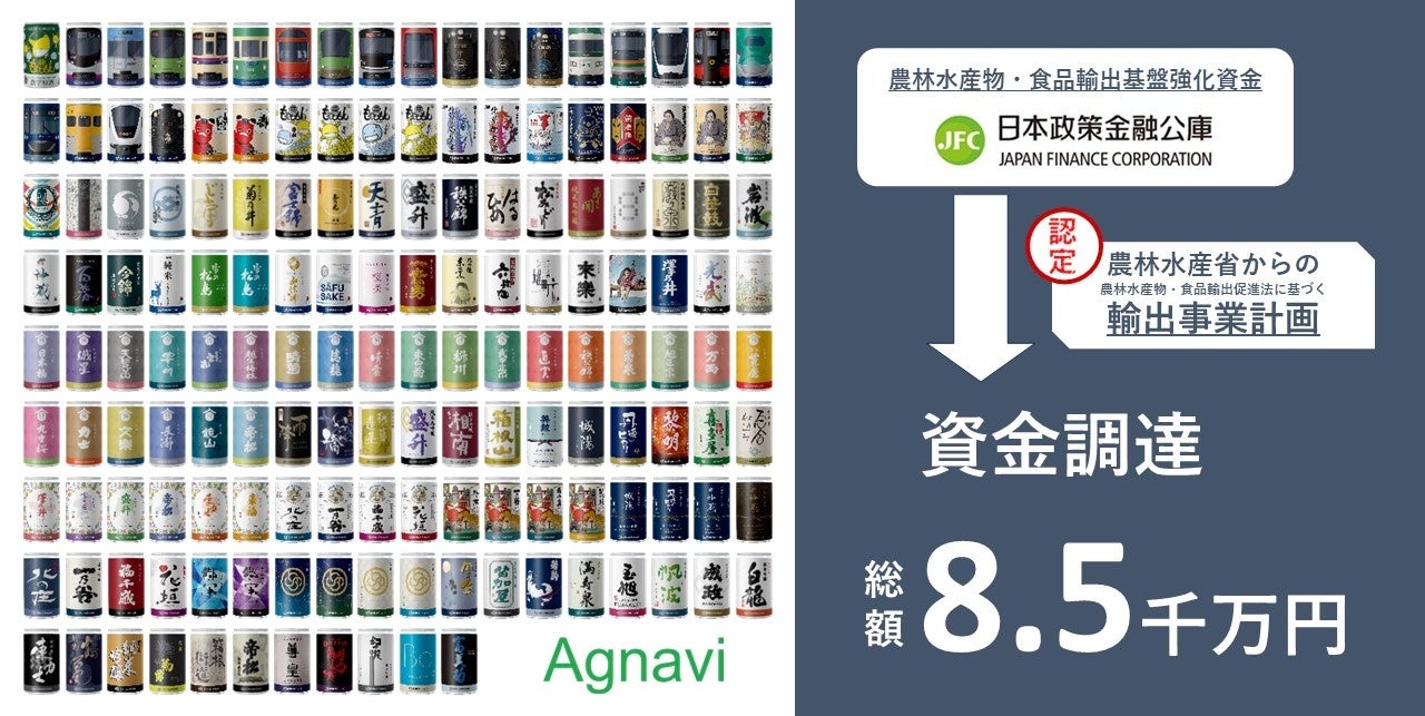 日本酒ブランド「ICHIーGO-CAN®」「Canpai®」を展開する株式会社Agnavi(本社:神奈川県茅ケ崎市、代表取締役 玄成秀)は、農林水産省令で定められる農林水産物又は食品の輸出拡大を図るための「輸出事業計画」の認定を受け、株式会社日本政策金融公庫の「農林水産物・食品輸出基盤強化資金」を活用した、株式会社日本政策金融公庫による制度資金(デットファイナンス)による融資契約を締結しました。本融資契約により総額8.5千万円の資金調達額が完了しました。今回調達した資金をもとに、海外市場での成長加速によるさらなる事業成長を実現してまいります。