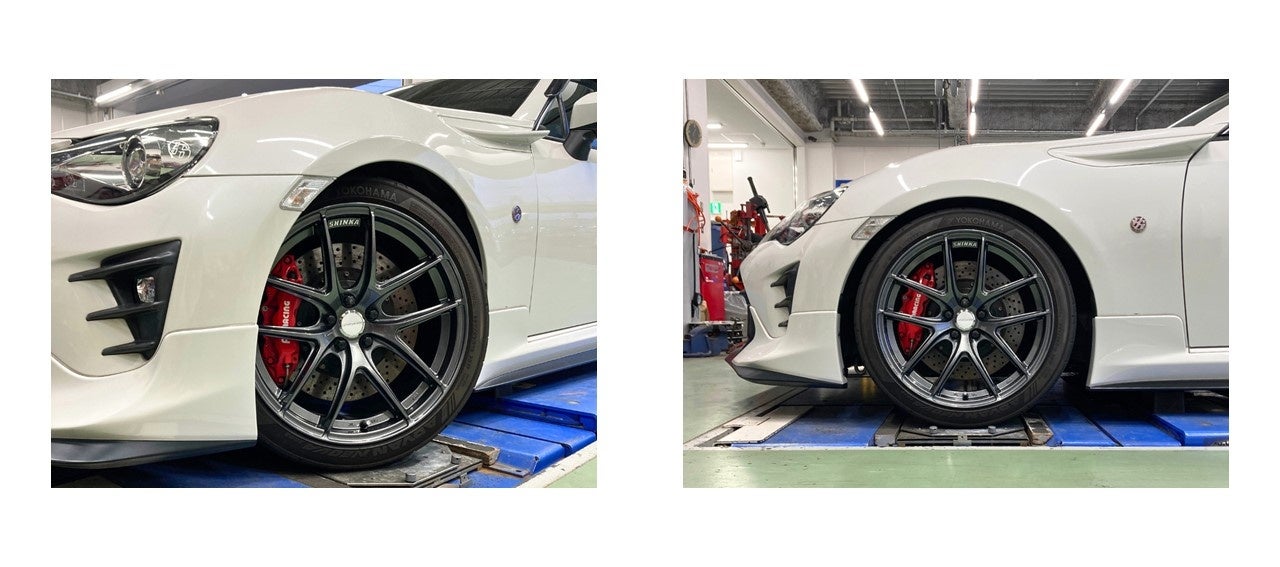 UPGARAGE Racing Light SHINKAはアップガレージ初のプライベートホイールで、ユーザー様とアップガレージ社員の意見をもとに、作ったホイールです。
