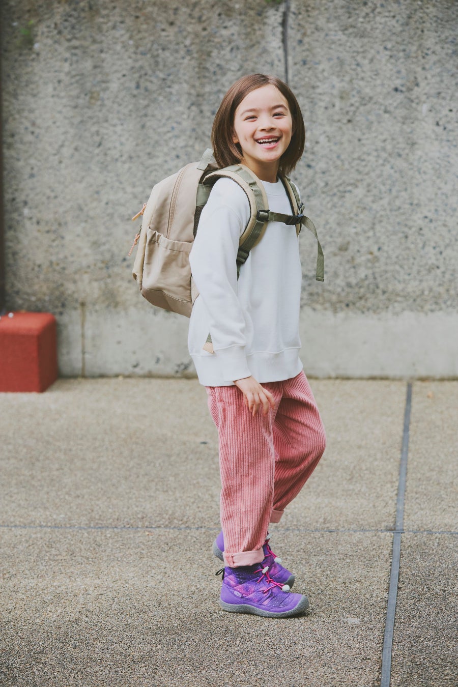 通学や遊び時間、週末など、いつどこでも子供たちがソトを楽しむためのキッズライン<KEENキッズ>を展開しています。大人モデル同様のデザイン性・機能性・アウトソール仕様を兼ね備え、その多くは、家族リンクコーデが楽しめるラインナップです。