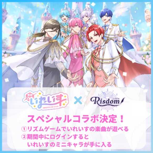 この度、リリースを記念して、2024年2月に歌い手グループ史上最速で日本武道館ワンマンライブを実現させた「いれいす」とのコラボが決定しました。いれいすのオリジナル曲がリズダムのステージとして登場し、コラボ期間中はログインボーナスとして、いれいすのミニキャラが全員にプレゼントされます。さらに、3 月 19 日(火)には TOKYO FM/JFN 38 局ネット「 SCHOOL OF LOCK! 」の生放送にいれいすがゲストとして登場。リズダムとのコラボについても、いれいすメンバーから紹介されます。