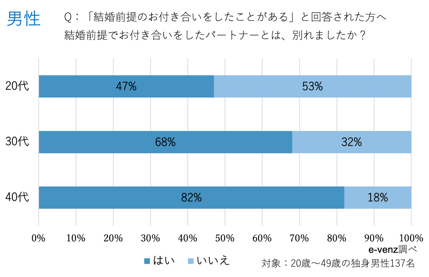 結婚を前提に付き合う男女の実態について調査すべく、今回e-venzでは20代から40代の独身男女を対象に結婚前提に付き合うことに関するアンケート調査を実施しました。