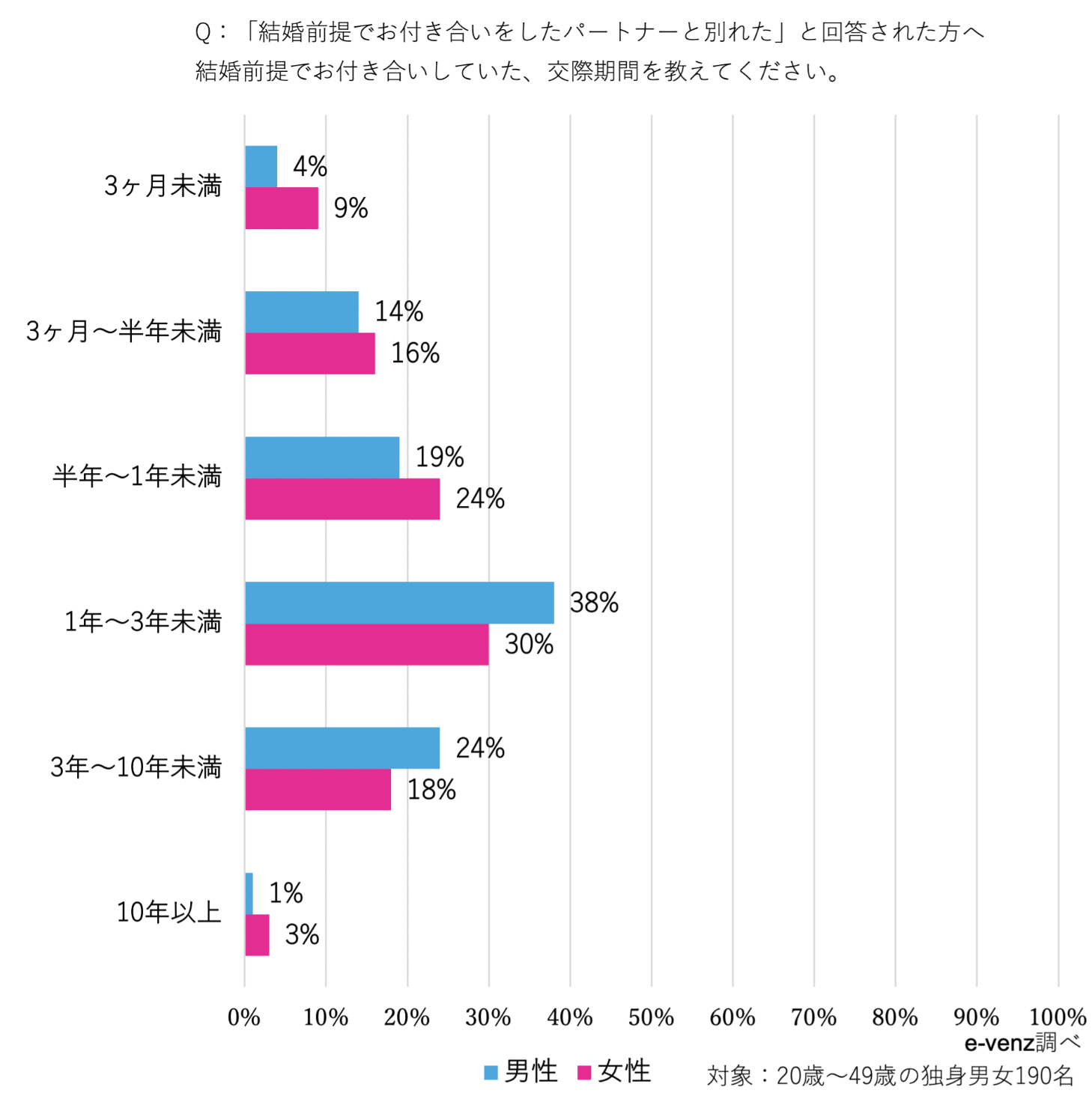 「結婚前提でお付き合いをしたパートナーと別れた」と回答した方に、結婚前提でお付き合いしていた、交際期間を調査してみました。
