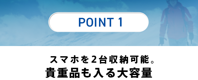 大容量設計なので、スキーや釣りの時でも常に貴重品を携帯。