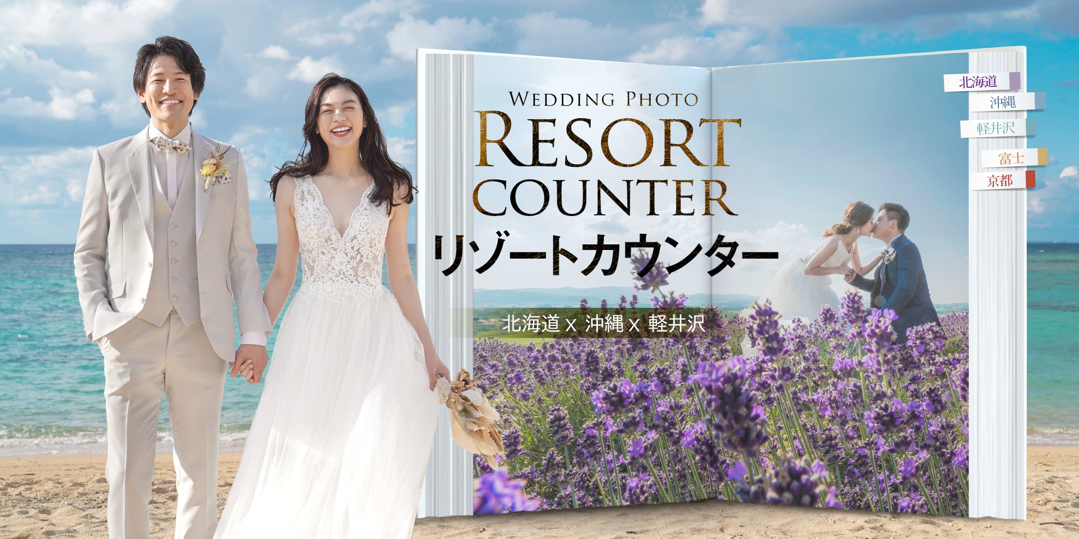 旅とウェディングフォトを一緒に楽しむことができると人気のリゾートフォト。デコルテでは北海道・沖縄をはじめとして、全国各地での撮影プランをご用意しています。ウェディングの形の多様化によりリゾートフォトの需要がますます高まってきている昨今の状況を踏まえ、お客様に合わせたご案内がよりスムーズにできるよう、アクセスしやすい横浜駅前店に、リゾートフォトに精通したスタッフが対応する「リゾートカウンター」の常設が決定いたしました。