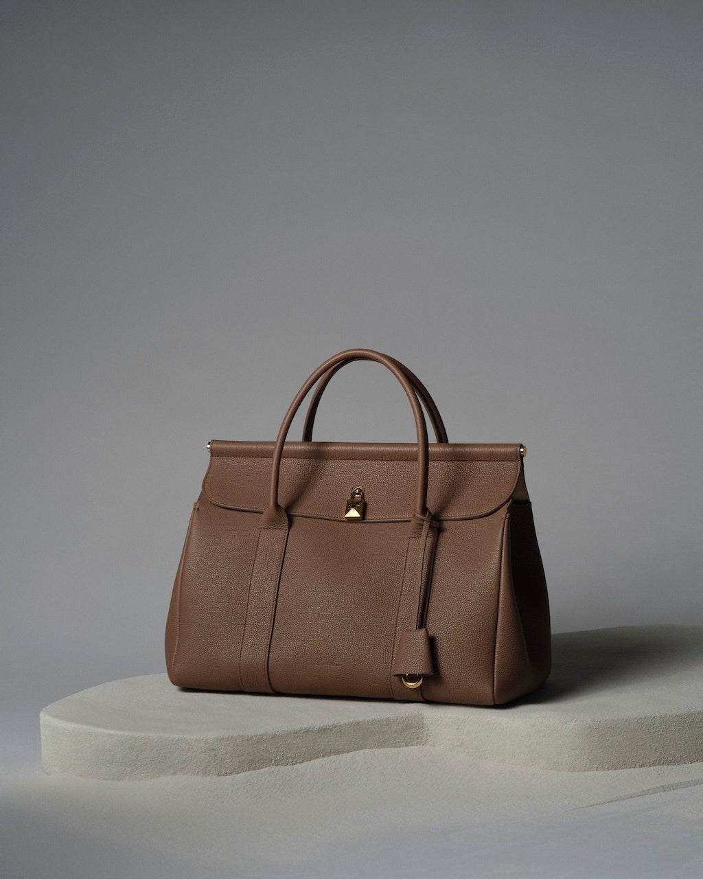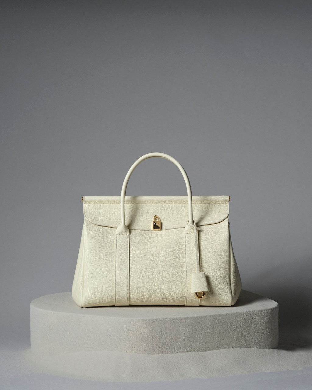 丸みを帯びたフラップとダブルハンドルの台形フォルムで、洗練とリラックス感が漂う《ルーム》は、メゾンのアイコニックな要素によって落ち着きと現代的な魅力を放ちます。ヴィンテージスタイルのレザーのキーホルダーの内側には、ロロ・ピアーナのレディスウェアやソフトアクセサリーのアクセントであるリング状の装飾があしらわれ、丸みを帯びたエッジにLPのイニシャルが刻印されたポリッシュ仕上げのゴールドの錠前は、バッグのサイドを留め、ファスナーを外すとさらにリラックスした印象になります。この開口部は《ルーム》の特徴であり、閉めても開けても、魅力、個性、安心感を失うことはありません。